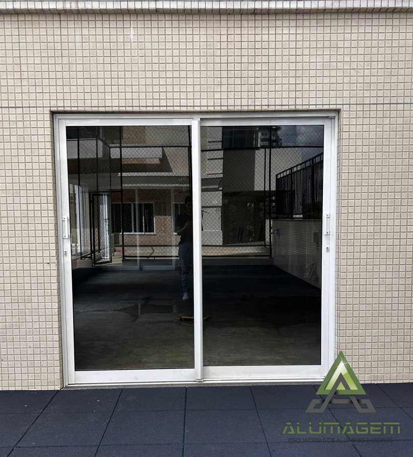 * Porta em alumínio de correr duas folhas.