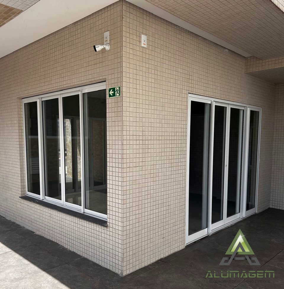 * Porta em alumínio quatro folha de canto.