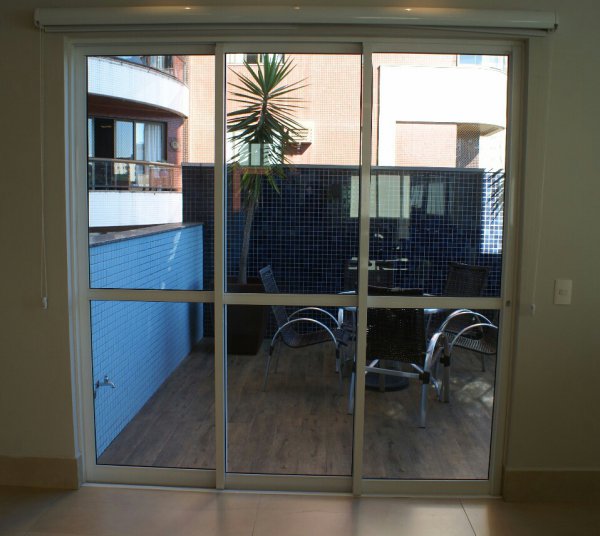 * Porta em alumínio de correr três folhas.
